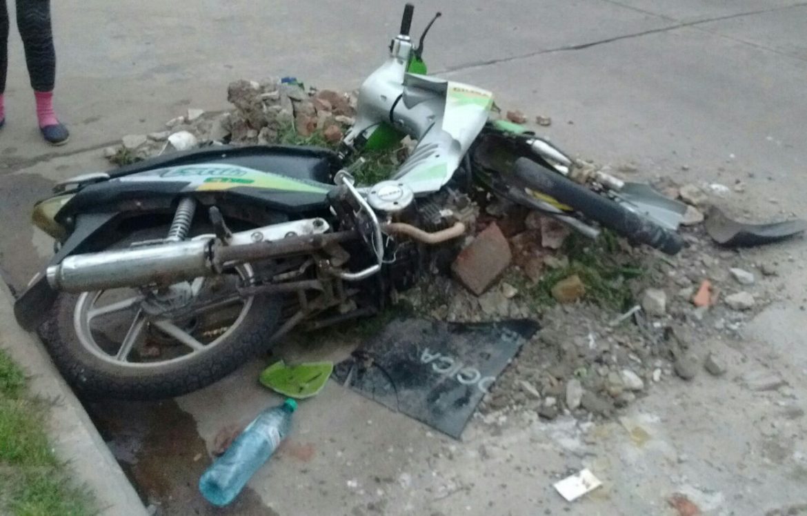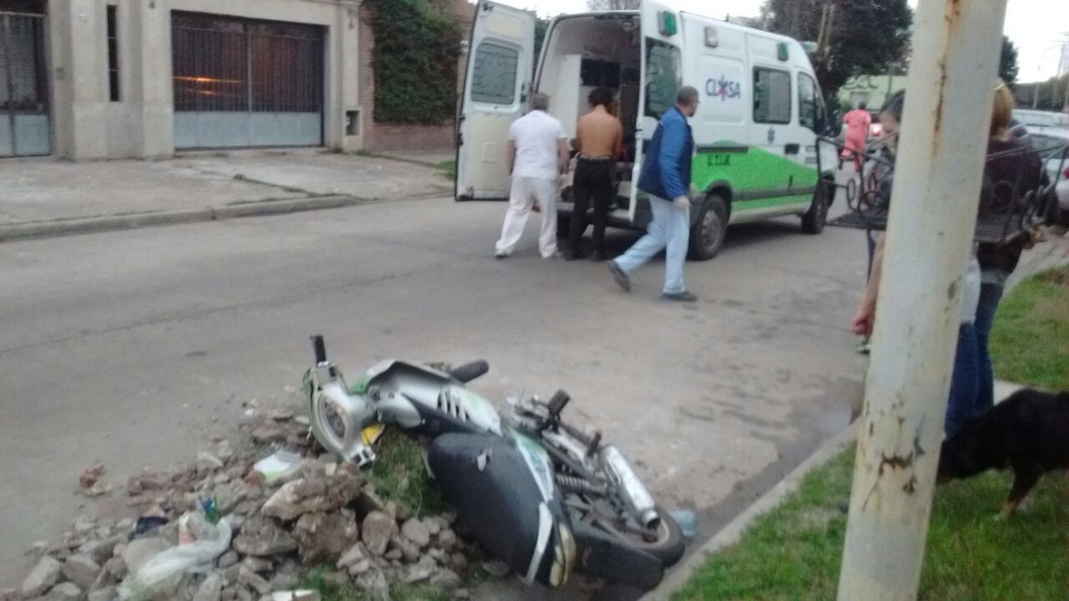 El hecho ocurrió siendo aproximadamente las 18:15 hs. de hoy lunes en calle Chacabuco al 1000, por causas que se tratan de establecer una motocicleta con dos jóvenes chocaron un montículo de escombros.