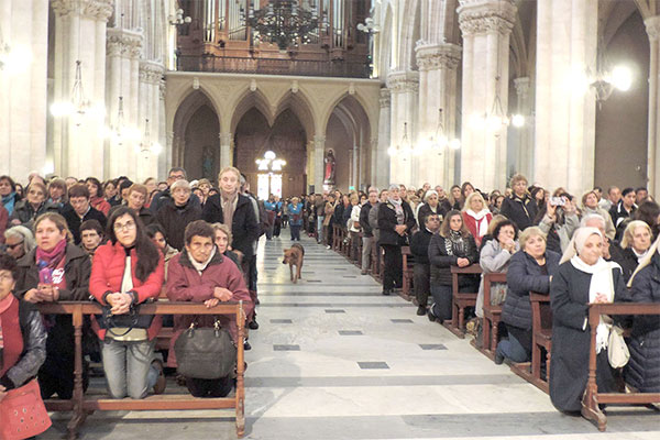 Cientos de personas llegaron a Luján  para honrar a la virgen desde distintas localidades de la extensa diócesis de Nueve de Julio. Llegaron en colectivos, combis y vehículos personales para estar a las 9 en punto en la Basílica donde Monseñor Ariel Torrado Mosconi presidió la misa. Allí exhortó a los fieles a implorar para que “crezca la comunión diocesana que haga fecunda la evangelización y robustezca la paz social de todos los argentinos”.