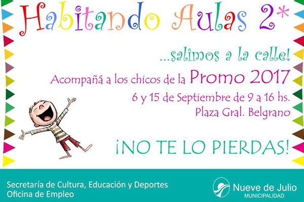 La Secretaría de Cultura, Educación y Deportes y la Oficina de Empleo de la Municipalidad de Nueve de Julio, llevará adelante desde hoy el segundo “Habitando Aulas” del presente calendario, que en esta oportunidad “sale a la calle” con el fin de llevar esta interesante propuesta a más jóvenes de la ciudad.