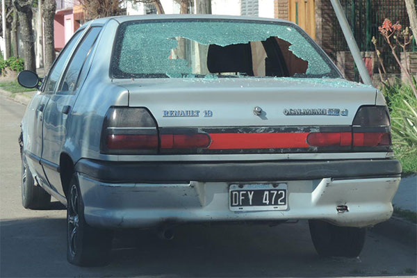Luneta trasera del Renault 19 víctima de los