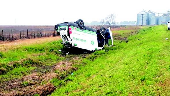 Una ambulancia del Hospital Municipal que transitaba por Ruta 188 con destino Pergamino volcó el pasado domingo en horas de la madrugada. El móvil de alta complejidad aparentemente mordió la banquina con barro y su conductor no pudo dominarla, por lo que terminó volcada en la zanja que corre paralela a la cinta asfáltica, a pocos metros del ingreso a la localidad de Rafael Obligado.