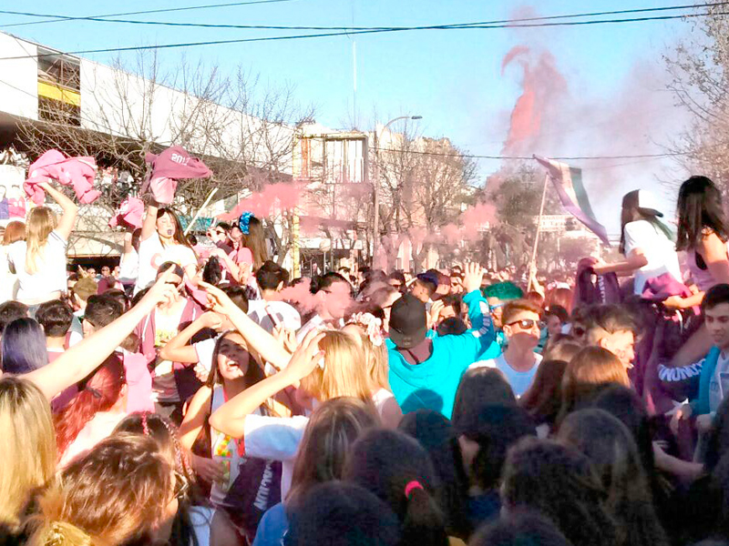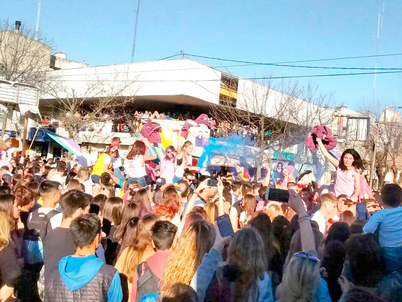 Los jóvenes estudiantes mostraron todo su colorido y alegría en el inicio de la tradicional fiesta estudiantil.