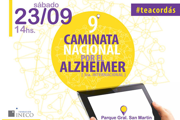 El sábado 23 del corriente, desde las 14 hs., en el Parque Gral. San Martín de nuestra ciudad, se desarrollará la 9na. Caminata (3 era. de carácter Internacional) por el Alzheimer, una iniciativa de la Fundación INECO, organización sin fines de lucro que promueve la investigación científica en neurociencias; la formación académica de profesionales; y la educación y concientización en la comunidad acerca del funcionamiento cerebral y las enfermedades neurológicas y psiquiátricas, y que desarrolla estas actividades con motivo del Día Mundial de esa patología, que se conmemora cada 21 de septiembre.