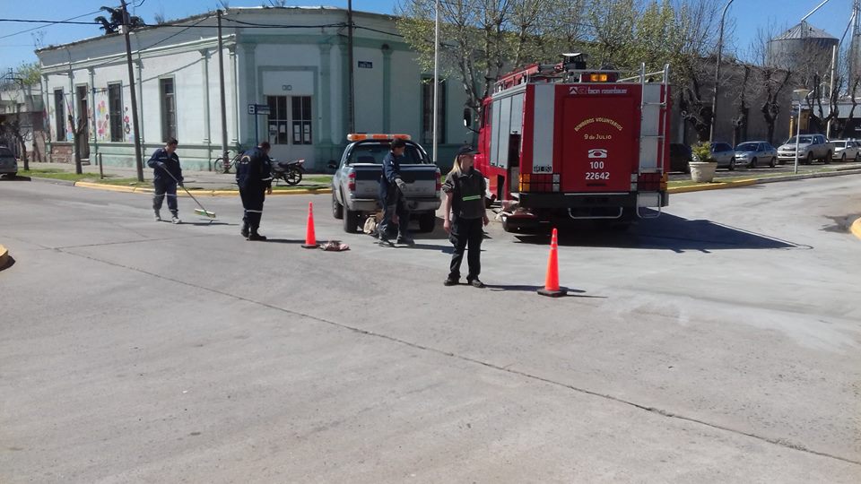 Trabajaron en el lugar 1 dotación de Bomberos Voluntarios, Personal de la Dirección de Transito y Defensa Civil de la Municipalidad de 9 de Julio.