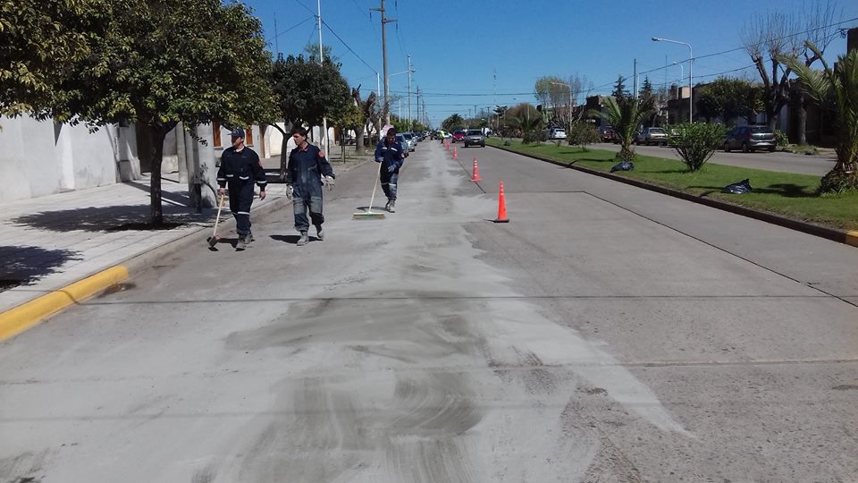 Se procede a tratar el derrame con cemento para su absorcion y luego el posterior barrido, restableciendose el normal transito del lugar.