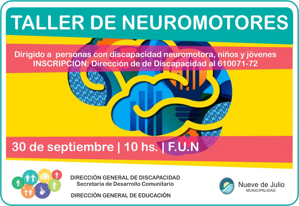 La Dirección General de Discapacidad, dependiente de la Secretaria de Desarrollo Comunitario de la Municipalidad de Nueve de Julio, conjuntamente con la Dirección de Educación, llevarán adelante, el próximo sábado 30 del corriente, a las 10 hs., en la sede de la Fundación Universitaria Nuevejuliense (FUN), de calle Robbio y Avellaneda, un “Taller de Neuromotores”, dirigido a personas con discapacidad neuromotora, niños y jóvenes.