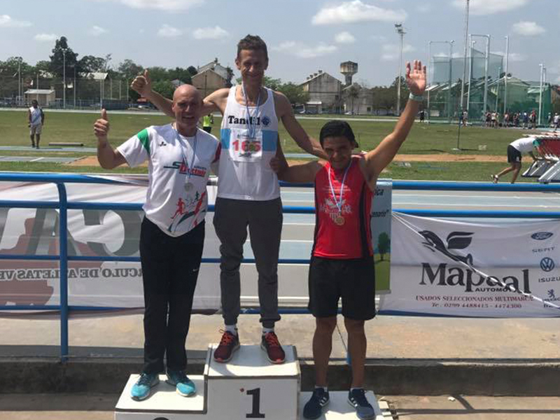 Hoy el atleta nuevejuliense Héctor “Yuyo” Benítez, participó de la prueba 3.000 mts con obstáculos, consagrándose campeón Argentino del 38° Nacional Máster de Atletismo de Pista y Campo, desarrollado en el polideportivo Jaime Zapata de Chaco, que dio comienzo el pasado viernes compitiendo alrededor de 400 atletas en las diferentes pruebas atleticas, con el auspicio del Instituto del Deporte Chaqueño (IDCh) y la fiscalizacion de la Confederación Argentina de dicha disciplina.