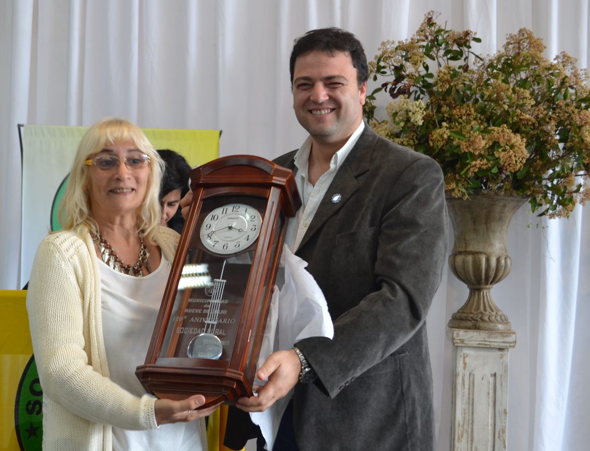 El Intendente Municipal procedió a entregar un delicado reloj antiguo de madera; desde Renatre Delegación Norte Junin, a través de su Delegado, Rodrigo Esponda.
