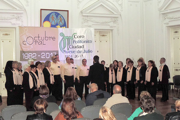 El pasado sábado, en el Salón Blanco del Palacio Municipal, con la organización del Coro Polifónico Ciudad de 9 de Julio, se dio inicio a la 36ta. edición de Octubre Coral, instancia que fue acompañada por un auditorio repleto.