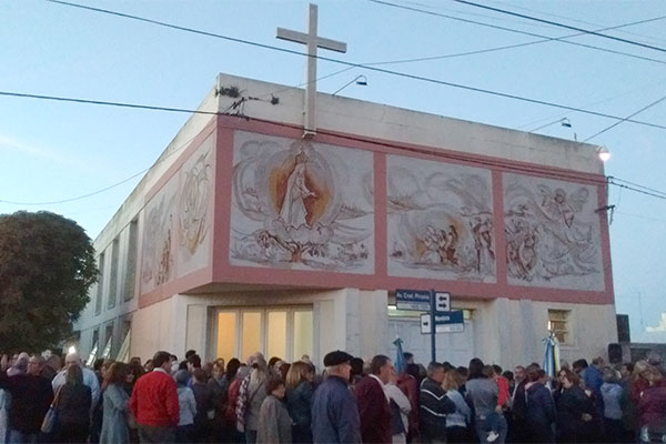 Luego monseñor Ariel Torrado Mosconi; el rector del santuario, Padre Guillermo Gómez y un representante de la comunidad, Jorge Falcone, abrieron las puertas para dar ingreso a la multitudinaria feligresía.