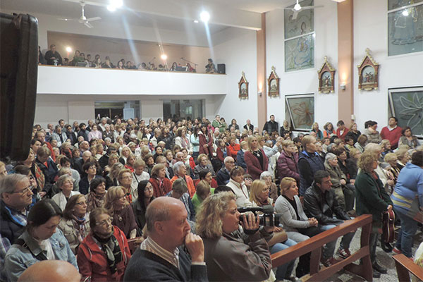 A continuación tuvo lugar celebración eucarística, presidida por el prelado, concelebrada por el flamante rector y por varios sacerdotes de del clero diocesano. Allí se recordó el enorme significado de este acontecimiento que se lleva a cabo en el año centenario de las apariciones de Fátima en Portugal y el 60 aniversario de la creación de la diócesis. “Mirar la imagen de María es contemplarla como modelo – señaló-. Por eso el edificio del templo material, nos debe recordar la tarea de edificar la casa espiritual que es la Iglesia viva en sus fieles”.