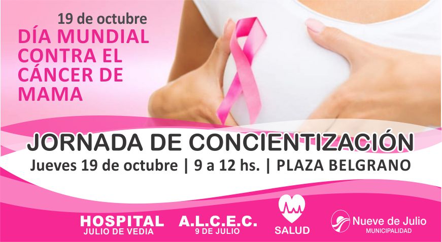 Desde la Secretaría de Salud de la Municipalidad de Nueve de Julio, el Hospital Julio de Vedia y ALCEC se adhiere a dicha iniciativa, con la realización de una jornada de concientización que tendrá lugar mañana, jueves 19 de octubre, de 9 a 12 hs., en Plaza General Belgrano.