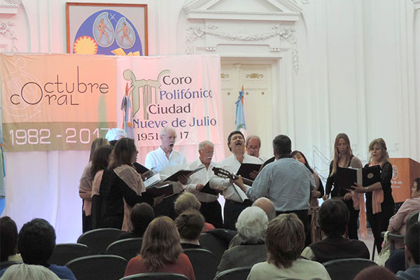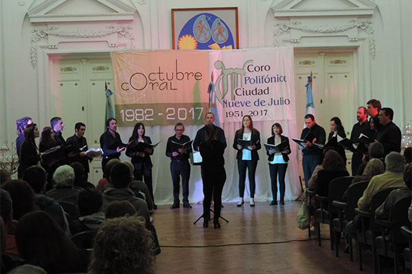 En el Salón Blanco del Palacio Municipal, con la organización del Coro Polifónico Ciudad de 9 de Julio, continuó en la noche del sábado, desde las 21,30 hs., la 36ta. edición de Octubre Coral.