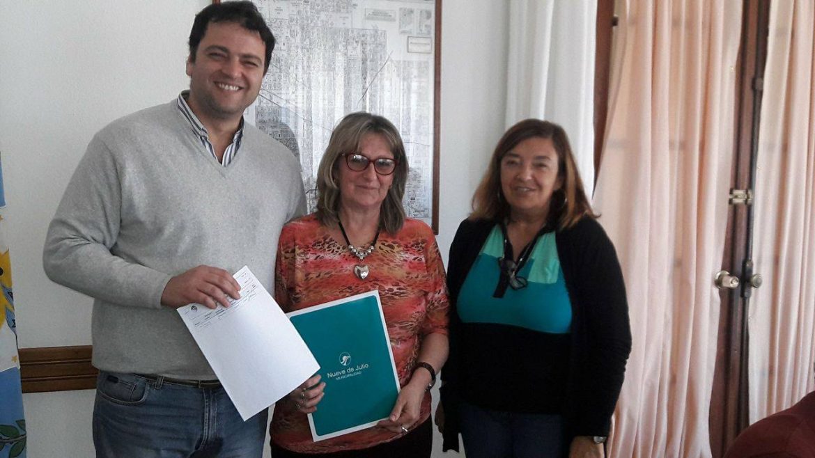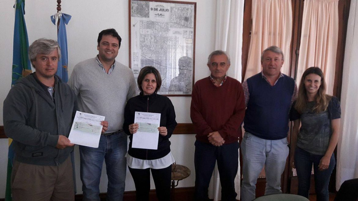 En la mañana de hoy, en su despacho, el Intendente Municipal de Nueve de Julio, Mariano Barroso, procedió a efectuar la entrega de subsidios a la Escuela de Educación Secundaria Técnica Nro. 2 "Mercedes Vázquez de Labbé”, destinado a la construcción de nuevos postes e indicadores de señalética y elementos del plan de semaforización, en base a los convenios oportunamente firmados con el municipio; y a la Jefatura Distrital de Educación, para la realización de la Feria del Libro.