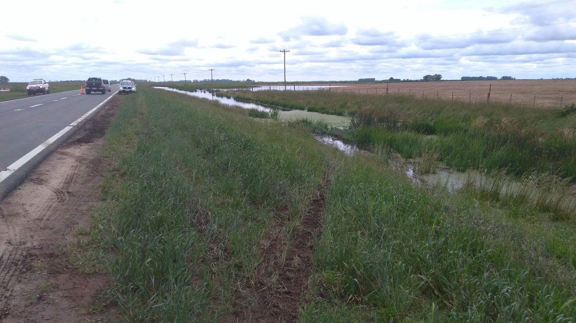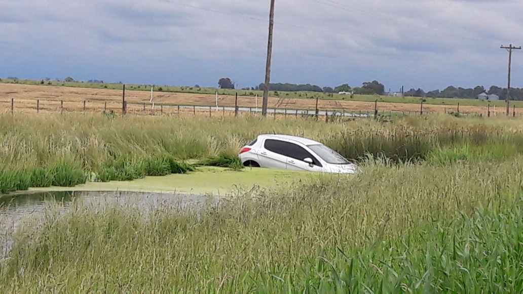 Afortunadamente el auto no se volcó en la cuneta, ya que con la cantidad de agua que contiene la misma, otro pudo haber sido el final.