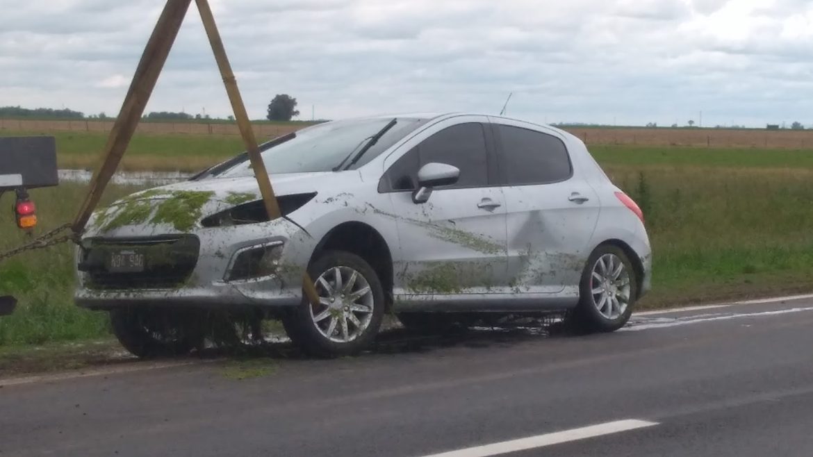 De acuerdo a lo que informo el protagonista del siniestro, el junto a su esposa, oriundos de Santa rosa, La pampa, se dirigían hacia Buenos Aires, cuando determina sobrepasar un camión, percatándose que un camión venia en la mano contraria, pero lejos, por lo cual realiza la maniobra, pero no advierte que delante del camión que venía en dirección contraria lo hacía también un auto de color metalizado, claro que se había mimetizado entre el rodado de porte mayor y el asfalto, por lo cual al ver que el auto, una VW Surán se le acercaba y ya no podían frenar ninguno de los dos,  el joven pampeano intenta una maniobra para largarse a la banquina, pero el Peugeot realiza un trompo sobre la cinta asfáltica y sale desplazado hacia su banquina (derecha) terminando dentro de una cuneta llena de agua.