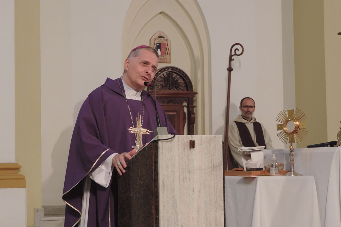 Durante la Misa estuvo acompañado por el cura párroco de la Iglesia Catedral, padre Guillermo Gómez y el diácono Ariel Palanga. Allí insistió en que el núcleo central de la fe católica consiste precisamente en la convicción de la vida después de la muerte. “Nuestros difuntos están verdaderamente vivos con Dios – remarcó-. Para ello nuestra mirada como creyente debe estar en la vida eterna en donde nos reencontraremos”.