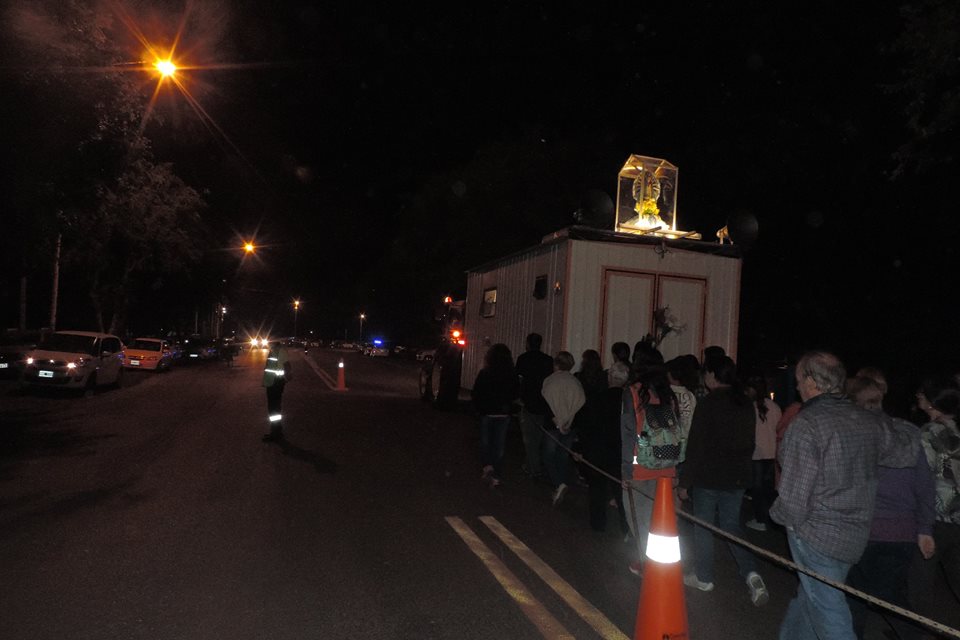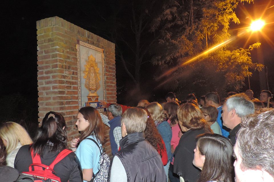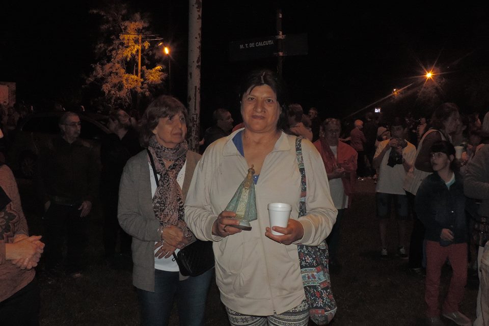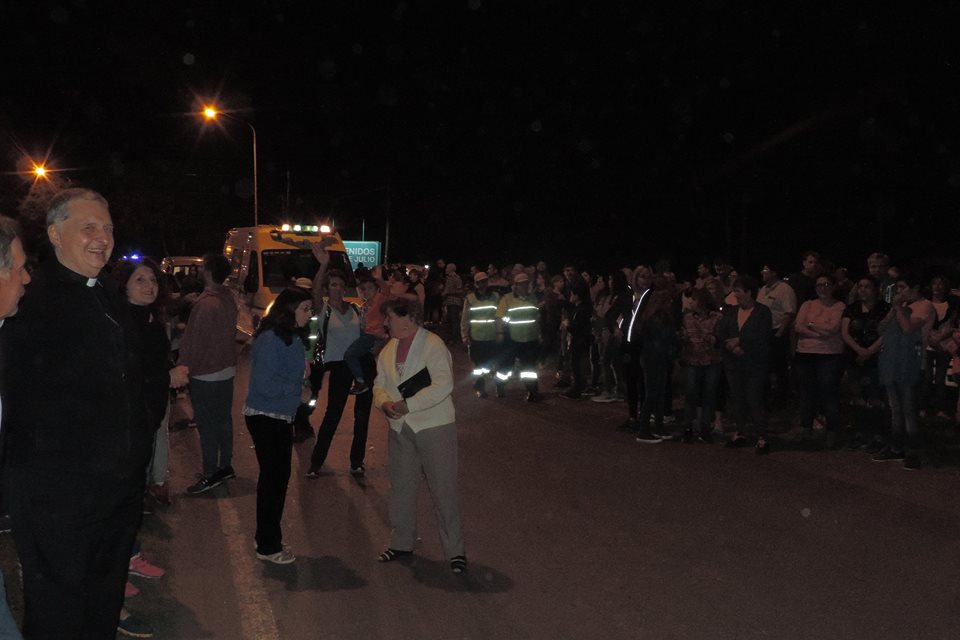 La numerosa columna de fieles, que superó las tres cuadras, despertó la curiosidad y la adhesión de numerosos vecinos, que salían de sus hogares y desde sus frentes, acompañaban a los peregrinos. Luego llegó a la tradicional rotonda, donde se encuentra la ermita de la Virgen. Allí se congregaron para saludar a la santa imagen.