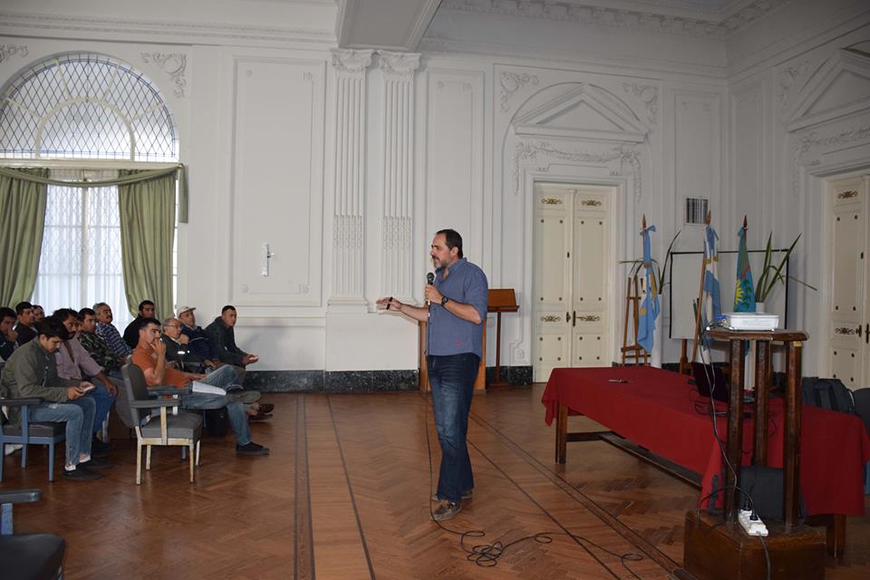 En la mañana de hoy, en el Salón Blanco del Palacio Municipal, y conforme se anunciara, se desarrolló una "Jornada de capacitación en pulverización agrícola" para operarios de aplicación de fitosanitarios, dictada por el Ing. Diego Oliva, del Ministerio de Agroindustria de la Provincia de Buenos Aires,