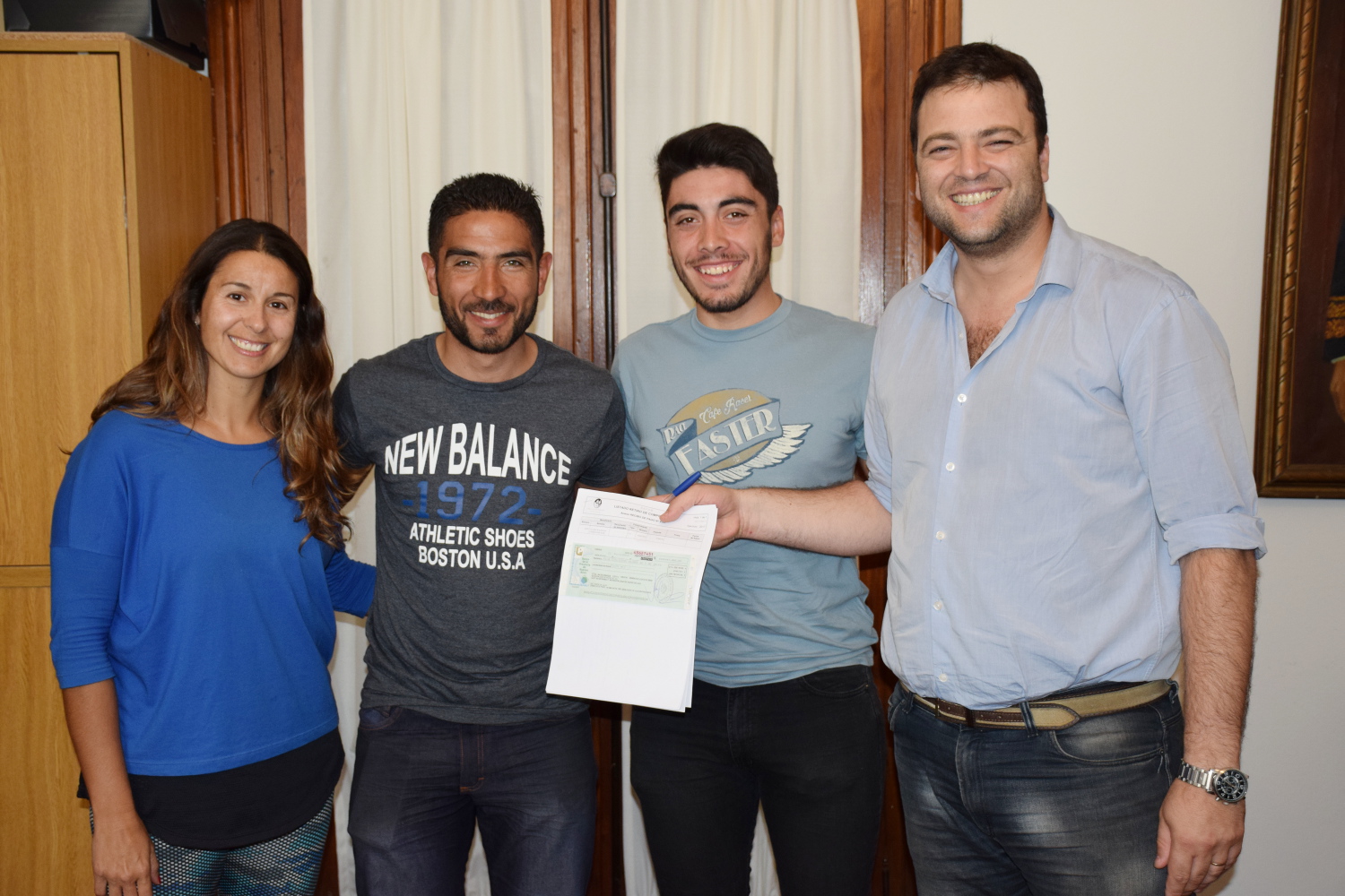 En la mañana de hoy jueves, el Intendente Municipal de Nueve de Julio, Mariano Barroso, acompañado de la Directora de Deportes, Marcia Molinari, procedió a efectuar un aporte económico al Club Ciclistas Unidos, destinado a la cobertura de gastos relacionados con la realización de una importante competencia de la modalidad Rural Bike a desarrollarse este fin de semana.