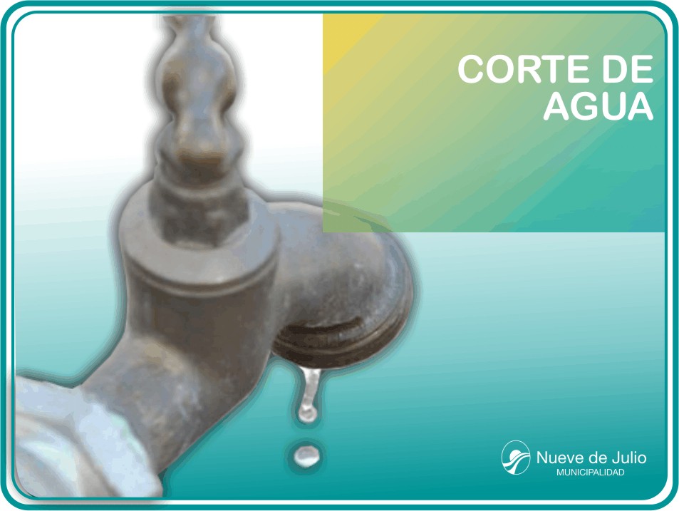 La Municipalidad de Nueve de Julio, a través de la Subsecretaría de Servicios Públicos, informa que el suministro de agua de Ciudad Nueva permanecerá cortado por espacio de dos horas y media aproximadamente, por tareas de mantenimiento.