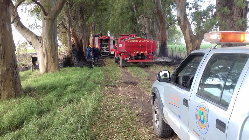 Trabajaron en el lugar 2 dotaciónes de Bomberos Voluntarios y Defensa Civil de la Municipalidad de 9 de Julio.