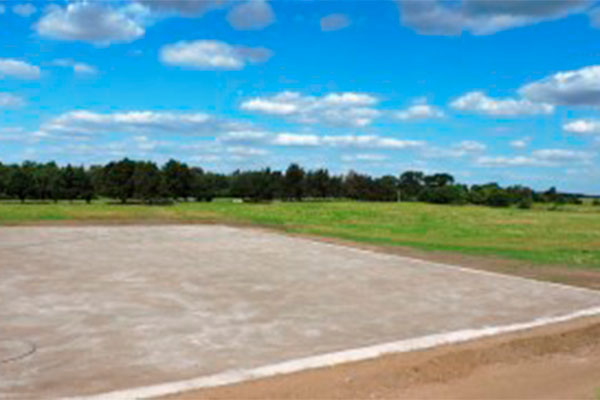 Para la instalación de la nueva cancha, la Sub comisión de Hockey contrató una empresa especializada de la ciudad de Pilar, “Techno Sport Construcciones”, que hace dos meses está realizando las labores finales de nivelación, bajo la dirección técnica de Tomás De Cock, titular de la empresa, contando además con un equipo de maquinarias locales contratadas y a fines de octubre se agregaron cuatro operarios de Pilar, que comenzaron las tareas manuales de colocación del cemento y compactación definitiva del piso, a quienes se agregaron ayudantes de nuestro medio para el hormigonado de la vereda perimetral donde va el alambrado, por eso es muy poco lo que falta para que venga otra empresa Porteña ya contratada, que será la encargada de la colocación del césped sintético.