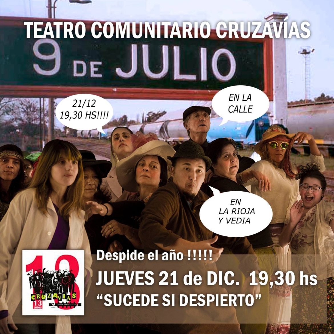 El día 21 de diciembre a las 19.30 hs en la esquina de Av. Vedia y Rioja, el teatro comunitario Cruzavias realizara su histórico cierre de año en la calle actuando su obra “Sucede si despierto”. Nos parece importante habilitar estos espacios de encuentro entre vecinos para volver a charlar, compartir, salir de nuestras casas y armando red en tiempos donde queremos recuperar la calle como lugar de todxs .