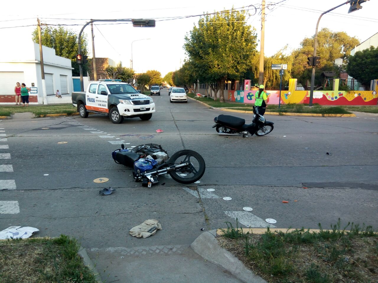 En la tarde de hoy domingo se produjo un accidente entre dos motos en la intersección de calles Tucumán y Av. Tomás Cosentino de nuestra ciudad.