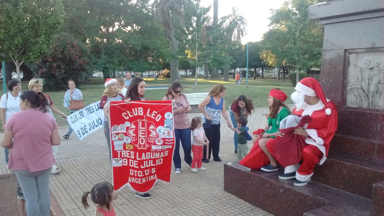 Organizada por integrantes del Club Leo 9 de Julio, tuvo lugar en la tarde de ayer una sábado actividad solidaria en el centro de la ciudad en la que Papá Noel, repartió golosinas y obsequios a los pequeños que paseaban y se mostraban sorprendidos por la presencia.