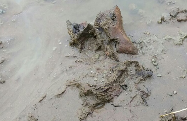 Durante el último día de 2017, en vísperas de año nuevo, sobre las orillas del Río Salado de Junín aparecieron unos restos bastante destruídos de un Stegomastodon “bebé”, dentro del barro, casi cubierto por las aguas limosas.