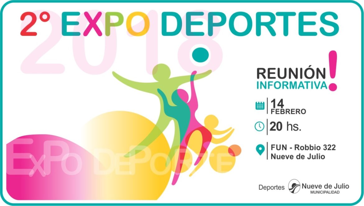 La Dirección de Deportes de la Municipalidad de Nueve de Julio convoca a instituciones deportivas, entidades, ONGs, gimnasios y distintas organizaciones relacionadas con el deporte a participar de la reunión informativa para la realización de la 2da. Expo Deportes de nuestra ciudad – a realizarse el día 4 de marzo- en la que las mismas podrán exponer sus ofertas de diferentes actividades.