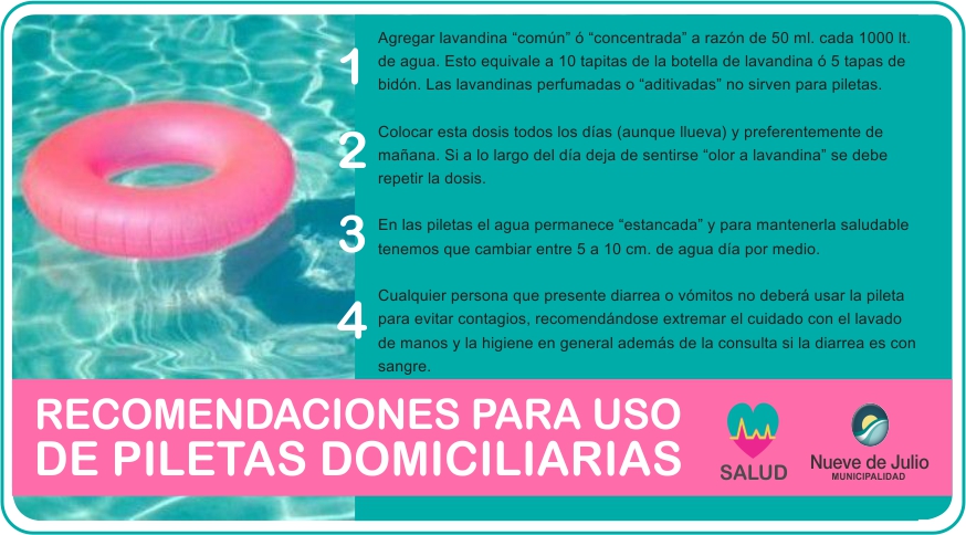 La Secretaría de Salud y la Dirección de Bromatología de la Municipalidad de Nueve de Julio brindan a la comunidad las siguientes recomendaciones para el uso de piletas domiciliarias.