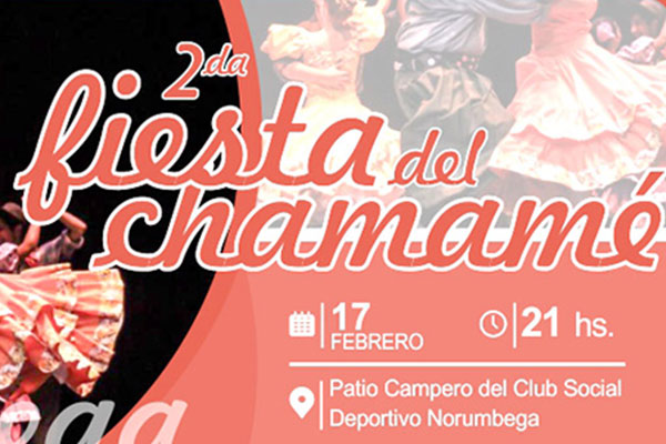 Con el auspicio de la Municipalidad de Nueve de Julio, en el patio campero del Club Social y Deportivo Norumbega, tendrá lugar este sábado 17 de febrero, desde las 21 hs. la 2da. Fiesta del Chamamé de esta localidad, la que contará con las presentaciones de “Andar Chamamecero” (Carlos Casares) y un gran cierre bailable animado por Lucas Barranco (Bolívar).