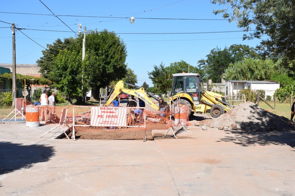 A través de la Secretaria de Obras Publicas de la Municipalidad de Nueve de Julio, se trabaja en estos momentos en la intersección de las calles Lagos y Gardel, donde se presentaba un importante hundimiento del pavimento, como consecuencia de la pérdida de agua de un caño troncal, que había generado la socavación del suelo.