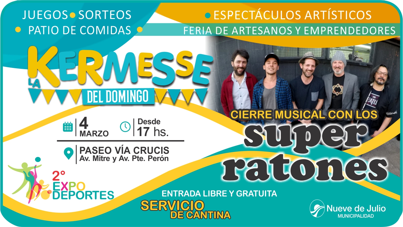 El venidero domingo 4 de marzo a partir de las 17 hs. en el Paseo del Vía Crucis (Av. Mitre y Av. Pte. Perón), tendrá lugar el gran cierre artístico – cultural y musical del proyecto “La Kermesse del Domingo”, llevado adelante por la Dirección de Cultura de la Municipalidad de Nueve de Julio.