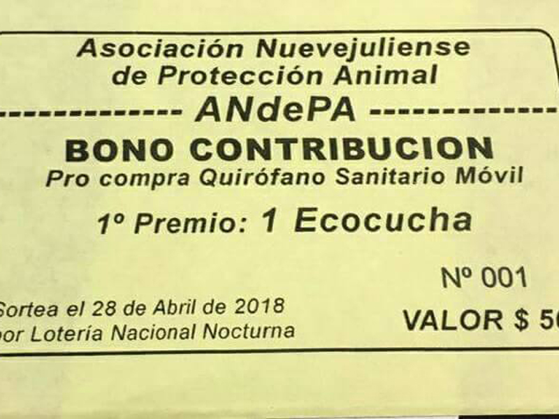 Para ello lleva adelante una rifa de una eco-cucha. ANdePA, Asociación Nuevejuliense de Protección Animal, lanzó una campaña para adquirir un quirófano móvil (casilla), con el objetivo de colaborar con las campañas de castración que se realizan desde el municipio, llegando así a todos los barrios y bajar el nivel de reproducción de los perros que se encuentran en la calle. Natalia López y Roxana Grimaldi, integrantes de la entidad señalaron a nuestro medio que el objetivo es “comprar una casilla y así trasladar el quirófano móvil a distintos sectores de la ciudad”