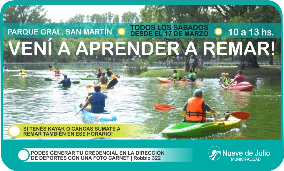 La Dirección de Deportes de la Municipalidad de Nueve de Julio informa que a partir de este sábado se modifica el horario de la escuela de remo y la actividad de remo libre para que quienes poseen kayak y canoas y deseen practicar.