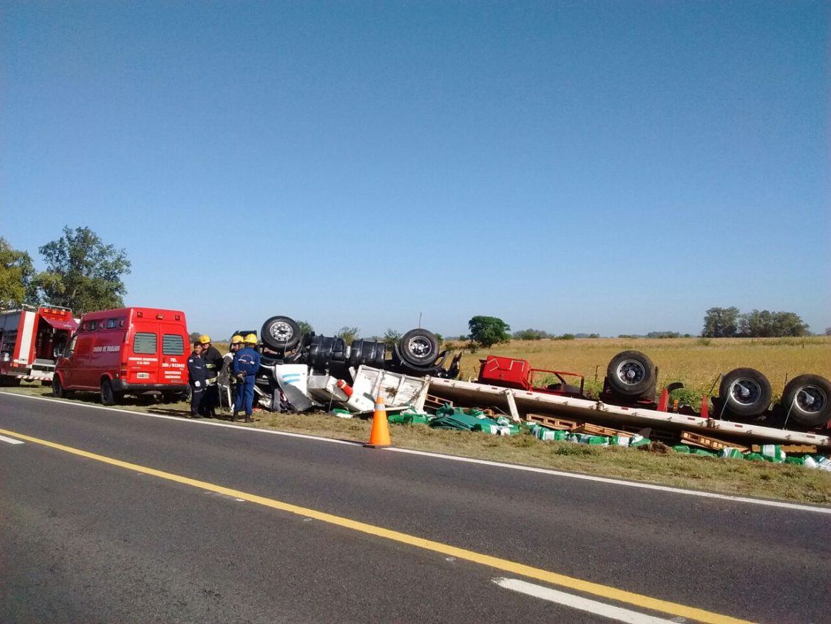 Siendo aproximadamente la 9:00 hs. de hoy, los Bomberos Voluntarios de 9 de Julio fueron convocados desde ruta N°5 km 274, donde por razones que se tratan de establecer se produjo un vuelco de un camión, que pertenece a la Empresa Losada de Avellaneda cargado de agroquímicos.