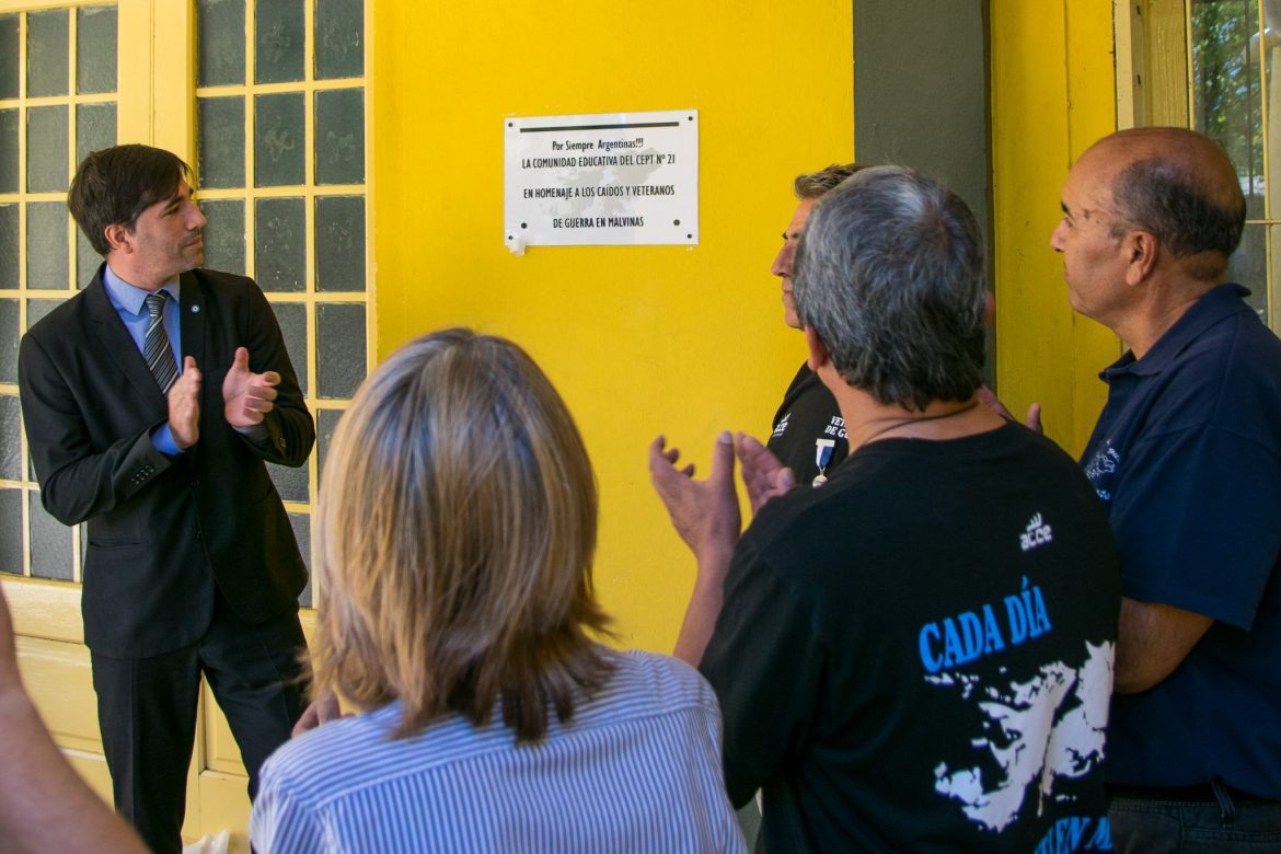 Junto a la comunidad educativa del CPT 21 descubrimos una placa para rendirles honor a los excombatientes y caídos, custodios eternos de nuestras Islas Malvinas.