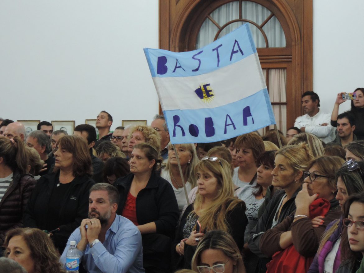 En la noche de ayer, una importante cantidad de vecinos desarrolló una marcha reclamando por los elevados valores aplicados a las tarifas de luz y gas; concentrándose inicialmente en Plaza General Belgrano, para luego ingresar al Palacio Municipal y al recinto del HCD para asistir a la sesión ordinaria del deliberativo, donde se tratarían sendos proyectos (Unidad Ciudadana – FPV y Cambiemos) relativos a la situación.
