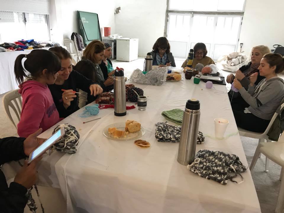 La propuesta fue la de realizar cuellitos y gorritos para más de cien niños que concurren al merendero, ante la proximidad del invierno, instancia a la que rápidamente se sumaron numerosas vecinas, que se acercaron a tejer y a efectuar donaciones de lana, destacándose la importancia que tiene lo producido para los chicos que concurren al merendero, generando un sentido de pertenencia al mismo, como sucedió con el evento solidario recientemente realizado.