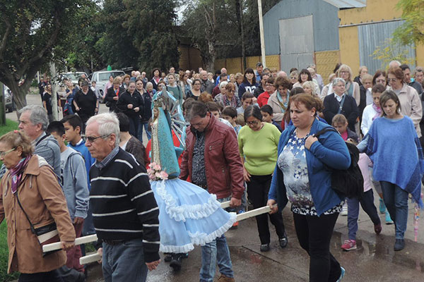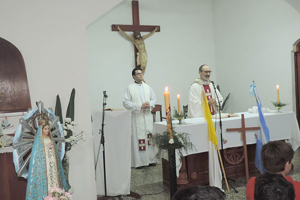 El sacerdote destacó la importancia de la Virgen María para nuestro pueblo, “ya que la misma ha querido quedarse en suelo argentino, ya como se sabe, su imagen había sido pedida desde Santiago del Estero, llegando desde Brasil a Buenos Aires y desde allí hacia Santiago; quedando la carreta a la vera del Río Luján, en medio de una estancia de Ana de Matos”.