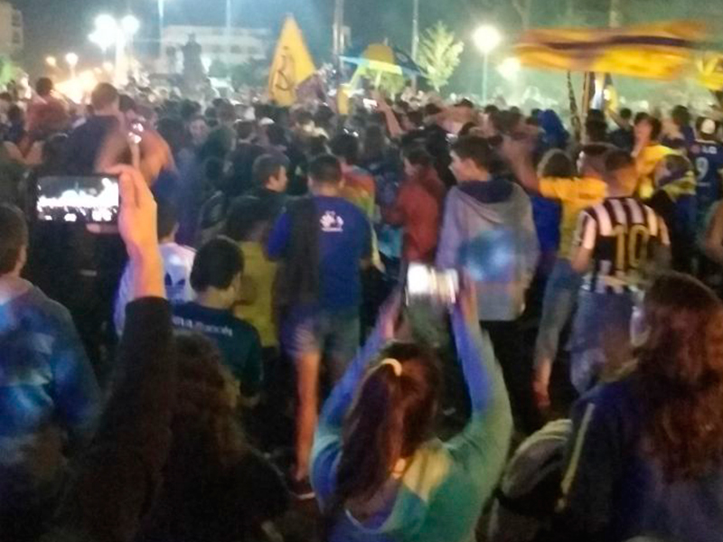 En la noche de ayer Boca se consagró bicampeón del fútbol argentino, luego del empate 2-2 con Gimnasia de La Plata, los simpatizantes xeneizes de nuestra ciudad se volcaron a la Plaza Belgrano, lugar tradicional de festejos en nuestra ciudad.
