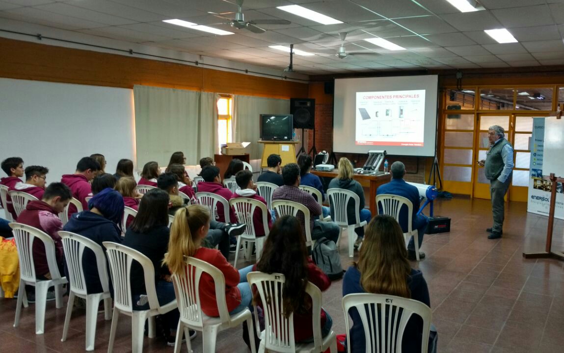 Durante la jornada del viernes, en la Escuela de Educación Secundaria Técnica Nro. 2, se desarrolló un interesante ciclo de charlas sobre energía solar, el Ingeniero Luis Alberto Wallage detalló a lo largo de la jornada aspectos teóricos y técnicos para que los alumnos se interioricen en esta temática de distintos sistemas orientados a la utilización de energía solar para calefaccionar agua y para producción de energía eléctrica.