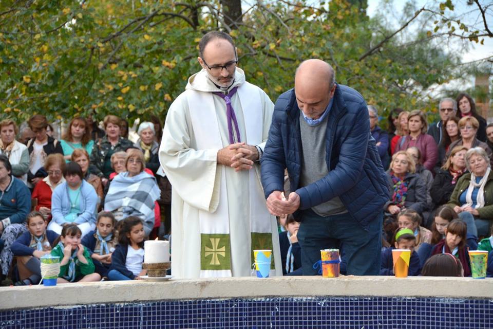 Las celebraciones incluyeron el rezo del Rosario en Plaza Italia y continuó, con la Misa en el santuario.