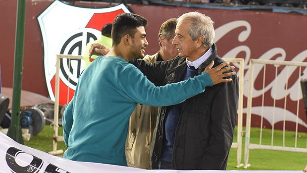 Rodolfo D'Onofrio (Presidente de River), Guillermo Cascio (Vicepresidente 2°), Matías Lammens (Presidente de San Lorenzo) y Juan Carr (Red Solidaria) recibieron un banner por parte del joven nuevejuliense y chicos que fueron trasplantados.