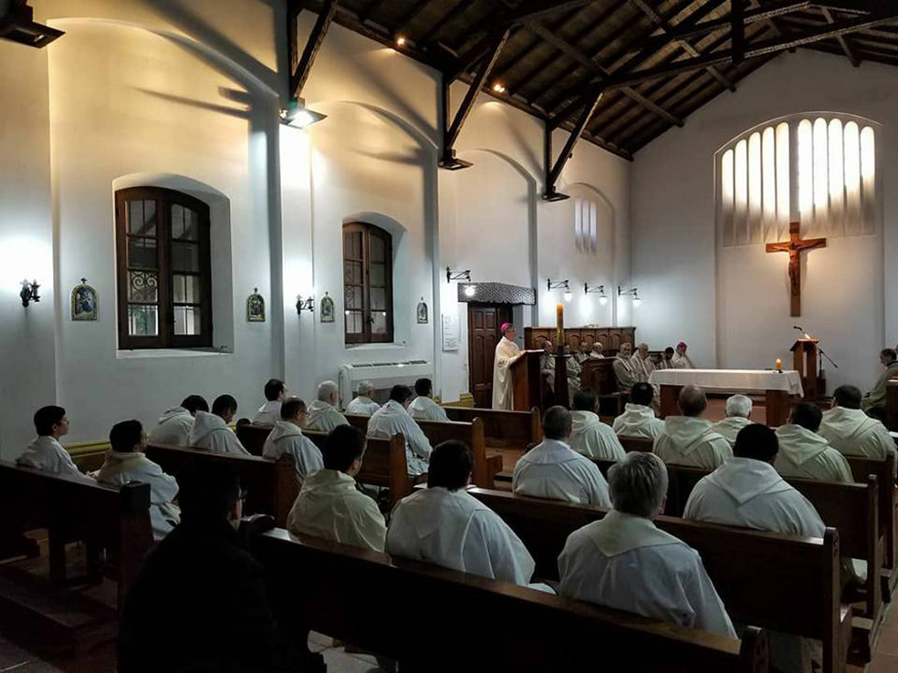 Desde el 14 al 18 de mayo los sacerdotes de la Diócesis de Nueve de Julio junto al obispo Monseñor Ariel Torrado Mosconi realizaron los ejercicios espirituales anuales en la abadía benedictina “Santa María de Los Toldos”. Es de destacar que estas jornadas tienen como principal objetivo la renovación de la misión del sacerdote. Justamente por ello, los ejercicios en esta oportunidad partieron con las figuras bíblicas de Moisés y Elías que son invitados a buscar a Dios en la soledad y el silencio para renovar la alianza. Además, través de la figura de Zaqueo, se exhortó a una renovada búsqueda del encuentro con Dios.