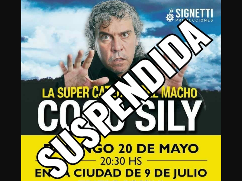 La Asociación Cultural Nuevejuliense ha informado en redes sociales que por decisión de la producción de Signetti se suspende la función prevista para el día hoy de Coco Sily “La Super Cátedra del Macho”. A partir de hoy desde las 19:00 hs en la boletería del Teatro se podrán canjear las entradas .
