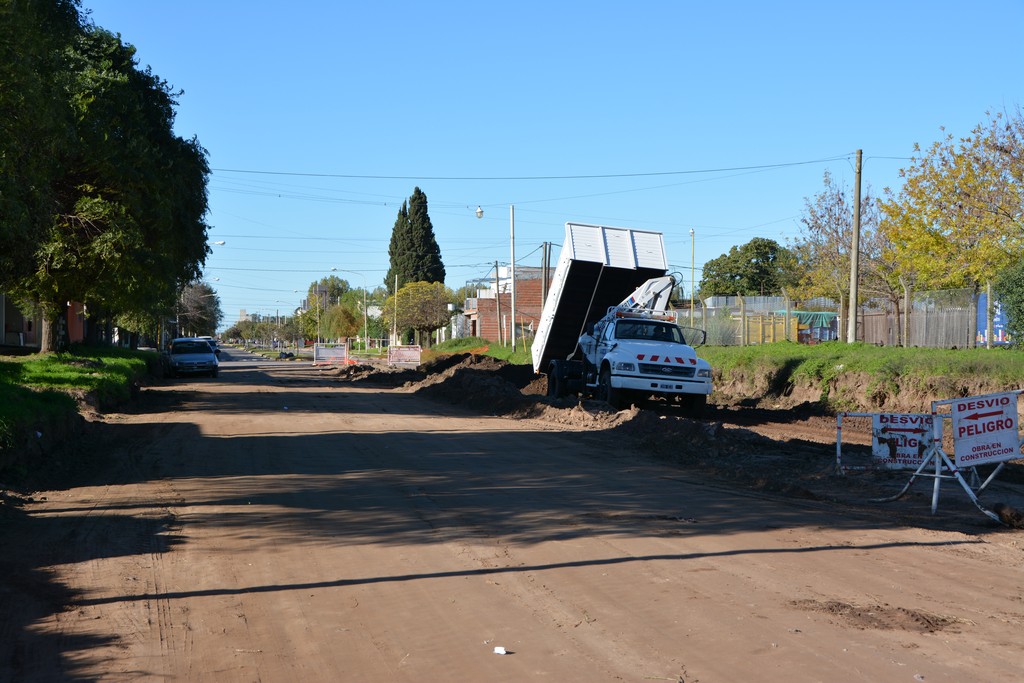 La Municipalidad de Nueve de Julio, a través de la Secretaría de Obras Públicas, tras haber  ejecutado la obra de desagüe subterráneo en la intersección de Avda. 25 de Mayo y Pueyrredón, la que se extendió a lo largo de 200 metros aproximadamente, hasta la calle Laprida, a través de la Cooperativa Eléctrica y de Servicios Mariano Moreno, se encuentra realizando el movimiento de suelo para la realización de obras de asfalto de hormigón.